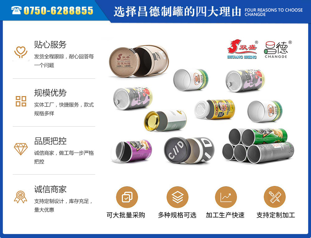 江門市昌德五金制罐有限公司位于江門與珠海臨近的古井鎮,是專業生產紙罐,食品紙罐系列的包裝研制、開發(fā)、生產的廠家,從建廠至今,公司本著“重合同、守信用”的原則,以“質量求生存,客戶至上”為經營宗旨,贏得了很好的信譽,公司擁有國內一流的技術設備和多年的生產經驗。年產休閑食品紙筒500萬左右,紙筒2000萬支左右,易拉罐,食品罐等1000萬左右,產品銷往各地。我廠是以高科技為先導,以技術創新整合為手段,成為迅速崛起的專業性包裝企業,憑借艱苦的創業精神和集體智慧,采用規(guī)范的現代企業運行機制,形成具有鮮明特色的企業文化模式和管理...